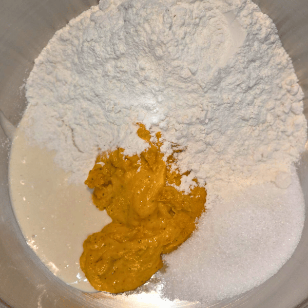 Ha tangzhong, surdeig, sukker, melk, hvetemel og salt i bakebollen. Elt deigen i 8–10 minutter på medium hastighet til den begynner å slippe kantene og er smidig. Tilsett deretter smøret litt etter litt mens maskinen går, og elt videre til deigen er helt glatt og elastisk.
