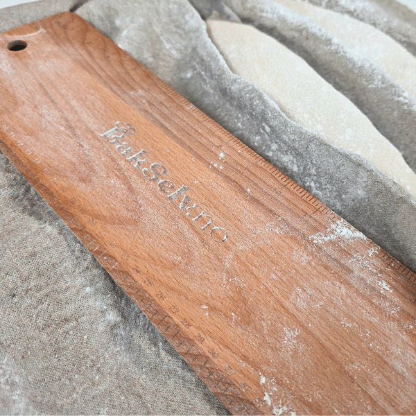Del deigen i ønsket antall emner – vanligvis 4–6 baguetter. Gjør en rask pre-shape (forform), og la deigen hvile i 20 minutter på benken for en enklere siste forming av baguettene.